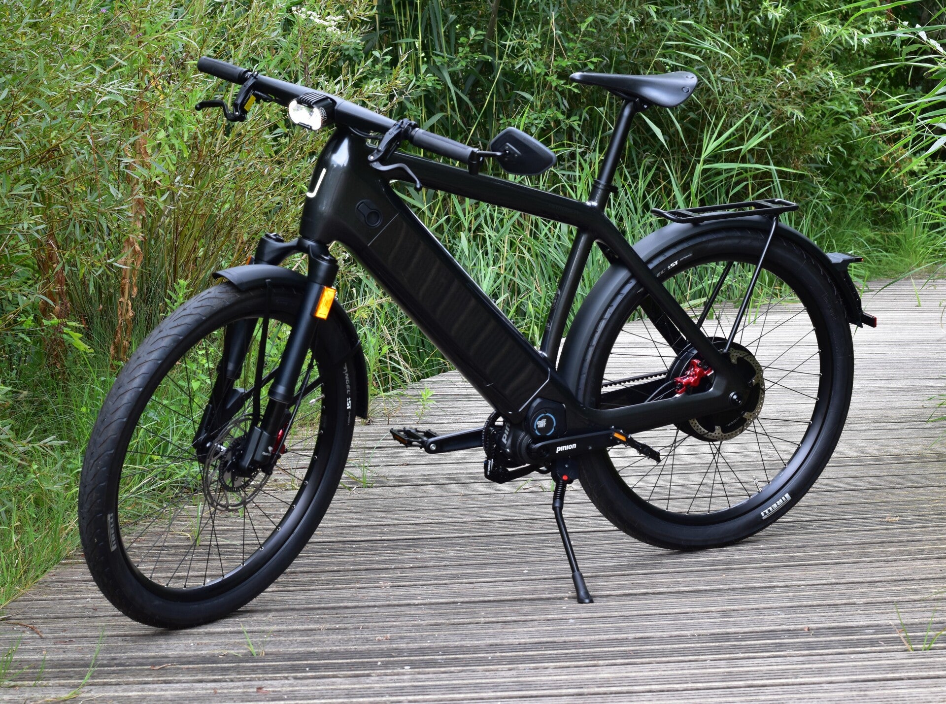 STROMER is een Zwitsers topmerk van speed pedelecs. Op de ST7 rijd je - dankzij de sterke achterwielmotor met een vermogen van 940W en een koppel van 52Nm - moeiteloos 45 km/u. Het schakelen gebeurt elektronisch (Pinion SmartShift). De ST7 is afgemonteerd met de beste componenten. Alles voelt stevig en robuust aan. De accu van 1440 Wh geeft een actieradius van 100 tot 260 kilometer, afhankelijk van de gekozen ondersteuningsstand (1-2-3-S). Stand 2 is geheel naar eigen inzicht aan te passen (via OMNI-app). De fiets heeft een elektronisch slot en een GPS-ontvanger waarmee de locatie in de app kan worden geraadpleegd. Firmware updates over the air.